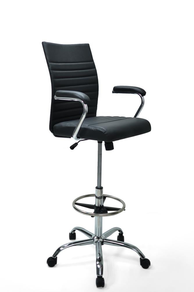 كرسي بار جلد اسود بتصميم عملي يساعدك على الجلوس بصورة صحية وآمنة طوال ساعات العمل، كما يأتي مزود بكل الإمكانات التي تدعم راحة جسمك، هذا ناهيك عن الخامات التي صنع منها والتي بدورها تتحمل كل الأوزان وكذلك الاستهلاك اليومي.