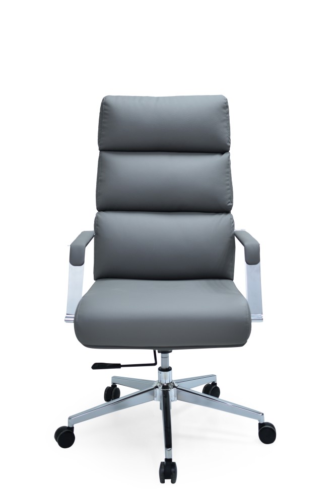 • تصميم فخم: صنع كرسي رمادي جلد من الجلد بتصميم فخم وأنيق ليضفي طابع جذاب لغرفة المكتب.