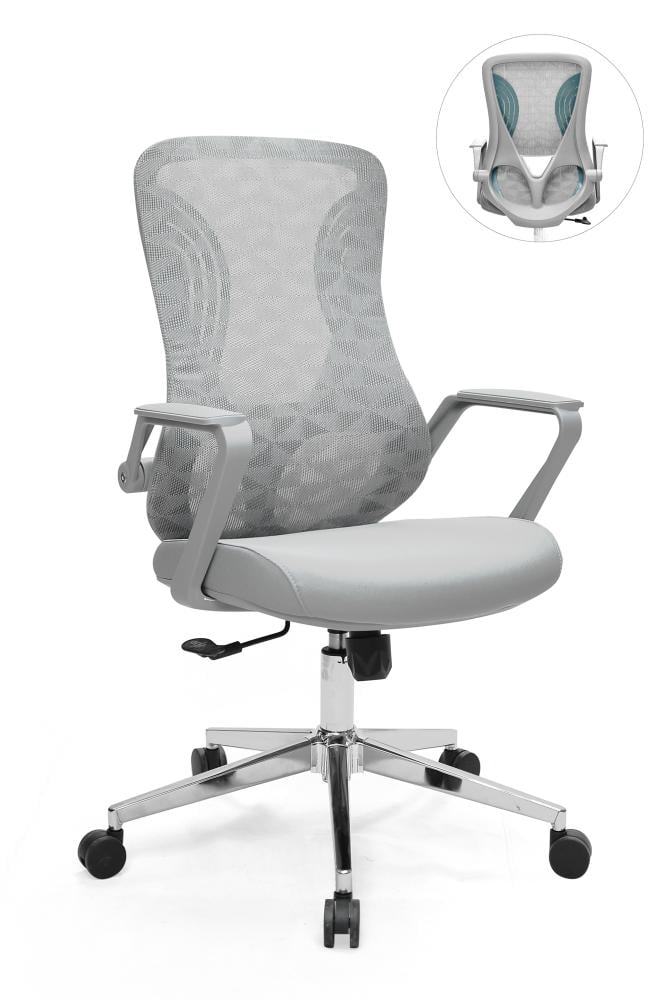 استمتع بتجربة جلوس لا مثيل لها مع كرسي مكتب رمادي شبك مُصمم خصيصًا ليجمع بين الراحة الفائقة والجمال العصري الأنيق، والذي يأتي بشبكة تهوية فريدة من نوعها وعالية الجودة لتضمن الراحة الدائمة دون قلق من العرض والحرارة، ناهيك عن الاستمتاع بالاسترخاء وتعزيز الإنتاجية على الدوام.