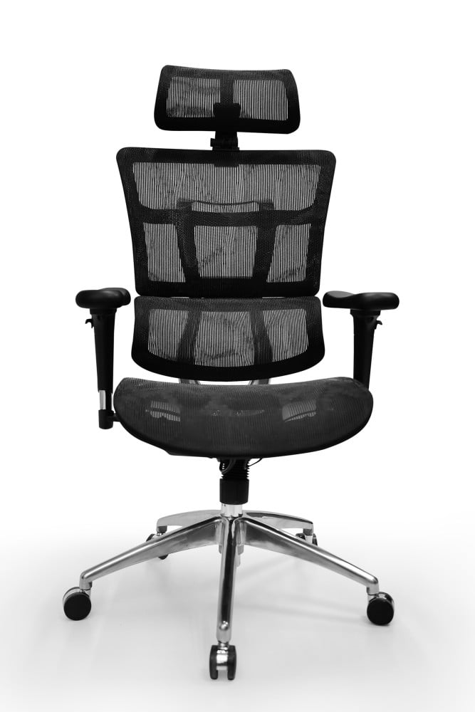 • صُمم الكرسي بدقة واحترافية ليمنح الفرد الراحة طوال فترة الجلوس، حيث زودّ بمسندين للذراعين وبمسند للرقبة ليدعم تلك المنطقة بشكل صحي للتقليل من حدة الآلام التي يعاني منها الشخص خلال ساعات العمل.