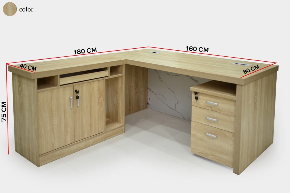 • به مساحات واسعة للتخزين، عبارة عن ثلاثة أدراج أحدها مع قفل، بالإضافة إلى خزانة أخرى ذات قفل.
