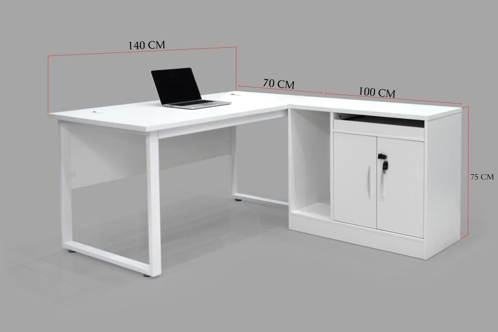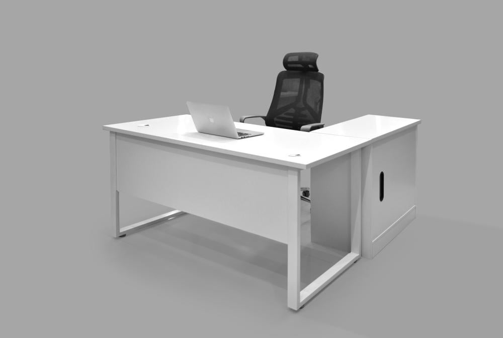 - تصميم عصري: مكتب ابيض زاوية متحركة، بلونه الأبيض الراقي وتفاصيله البسيطة التي تحاكي متطلبات بيئة العمل.